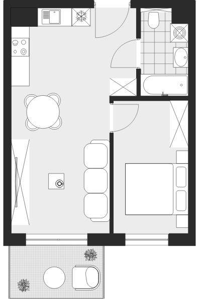 - Charakterystyka mieszkania: 38,13 m², 2 pokoje, 1 łazienka; stan: deweloperski